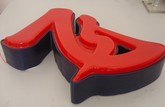 3、吸塑成型好后,就是用亞克力銑邊機進行修邊等后續(xù)工序了。同時,側(cè)面做好鐵皮烤漆邊,鋸出字內(nèi)徑同樣大小的PVC板做底板,粘上LED字,然后合起來,基本上就成了。